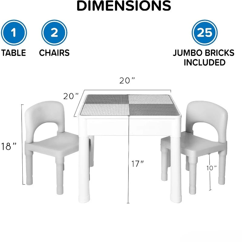 - 2 CHAIRS & 25 X-LARGE BLOCKS: Designed for 2-4 year olds, this comprehensive set includes two chairs and a table perfectly sized for young children, along with 25 compatible extra-large blocks .