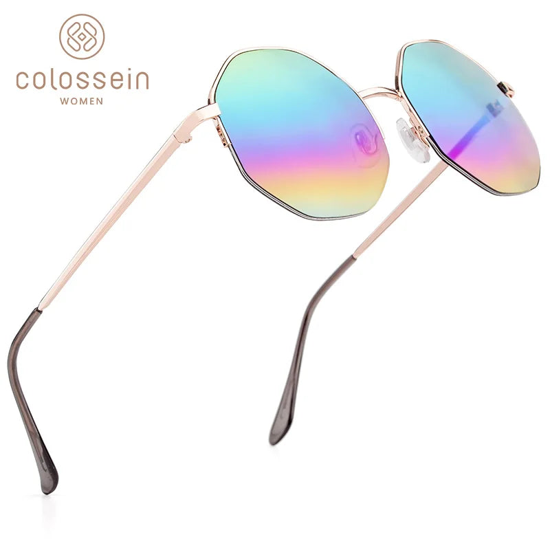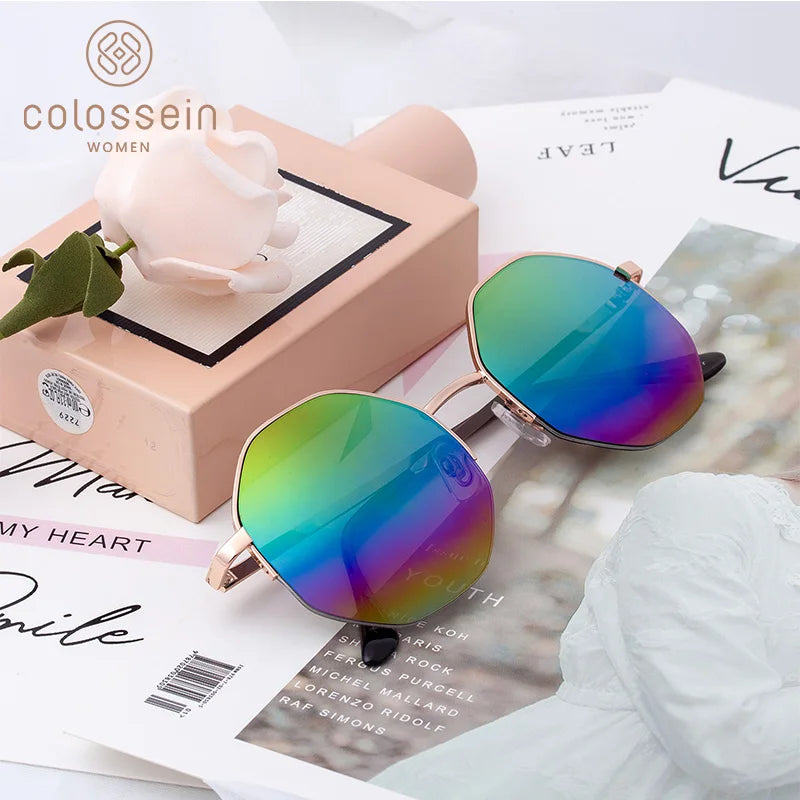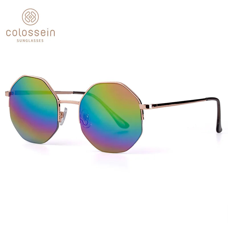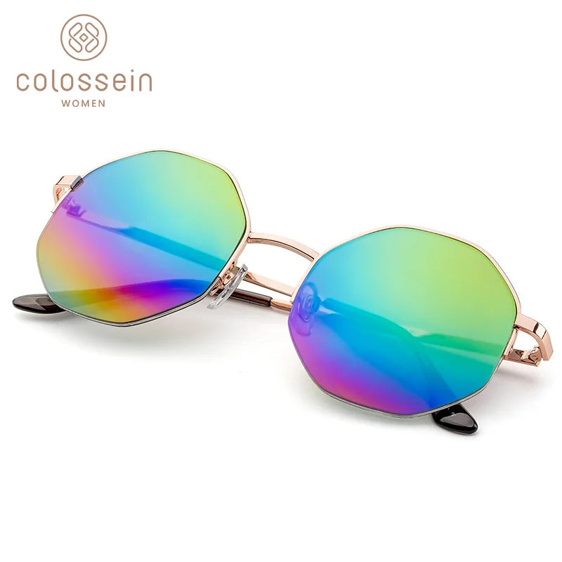 New Fashion Women Round Metal Mix Lens Reflective Gradient Sun Glasses