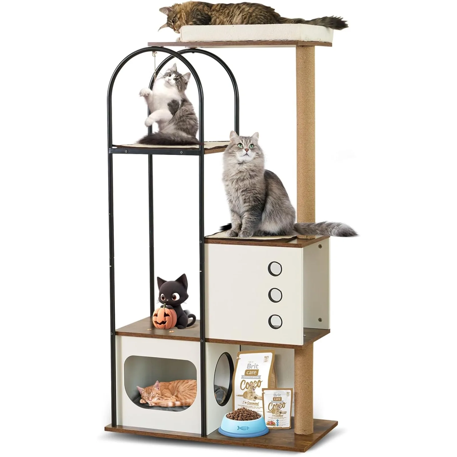 MODERN STYLE: Our cat tree condo features a sleek rectangular design accented by curved steel tubes, adding a touch of sophistication to any space. Whether in your living room, bedroom, or balcony, it's sure to elevate your decor.